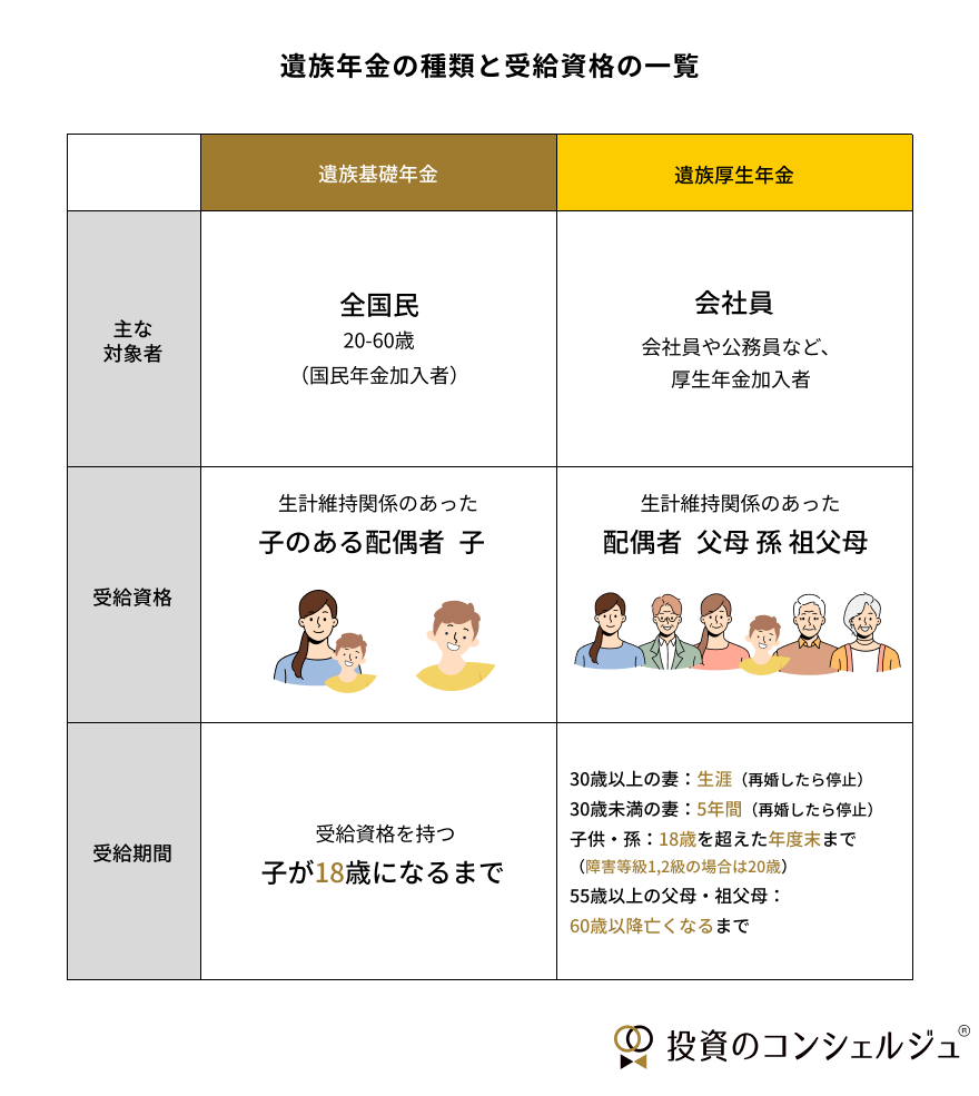 • 遺族補償年金:被害者の死亡によって生計を維持していた遺族が一定の条件を満たす場合に支給される年金。