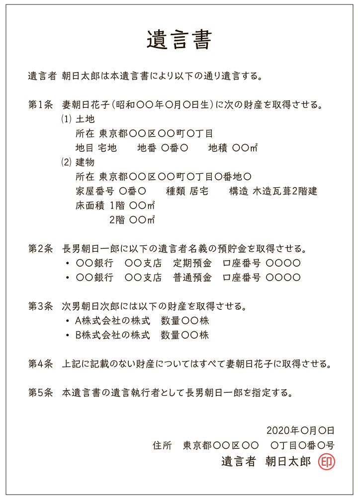 遺言の内容すべてを本人が直筆で書く必要があり、パソコンや代筆は認められていません。 - 日付を記載すること