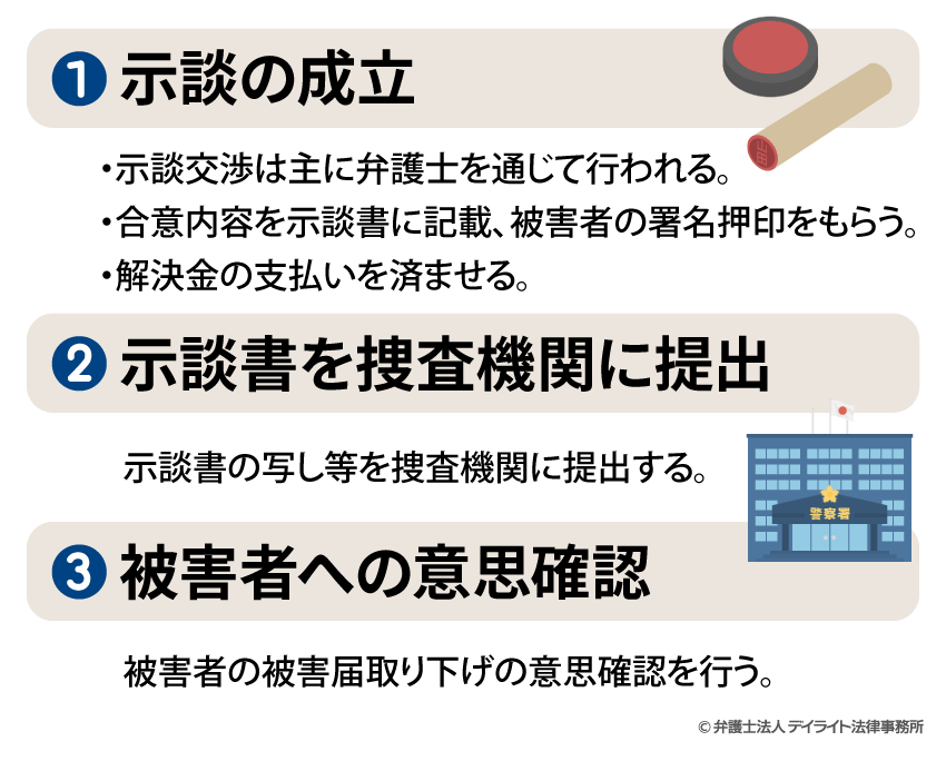 - 既に告訴されている場合は、告訴の取り下げが別途必要